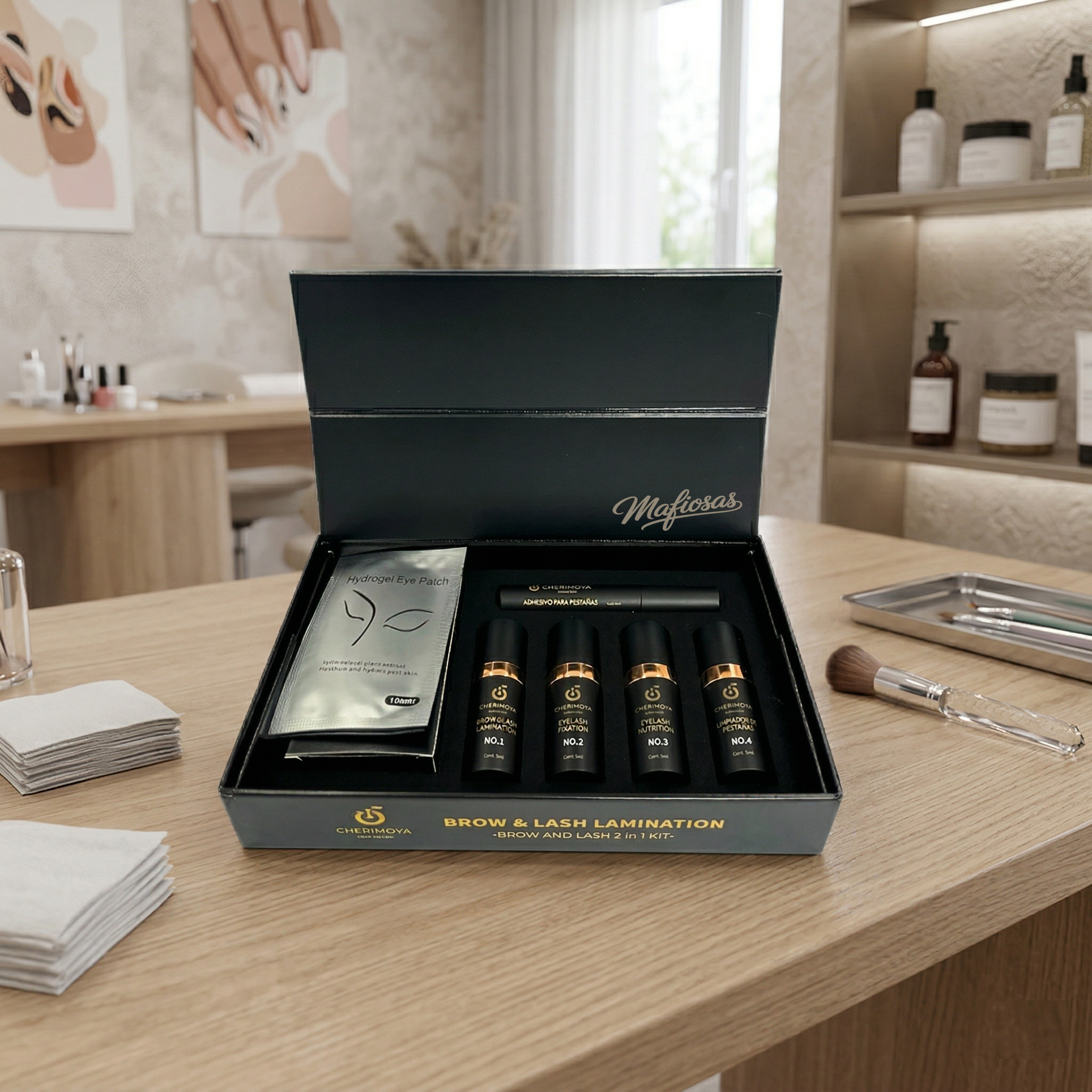 El Kit Brow & Lash Laminación Cherimoya reúne todos los productos esenciales para realizar lifting de pestañas y laminado de cejas de forma profesional. Diseñado para lograr curvatura, fijación y nutrición en un solo sistema, permite obtener resultados definidos, prolijos y de larga duración.